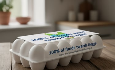 Eggs are delivered to underserved communities, schools, and food programs, reaching individuals and families facing hunger. We are currently distributing in Afghanistan. We plan to distribute in Bangladesh, Sudan, and Palestine in the near future.